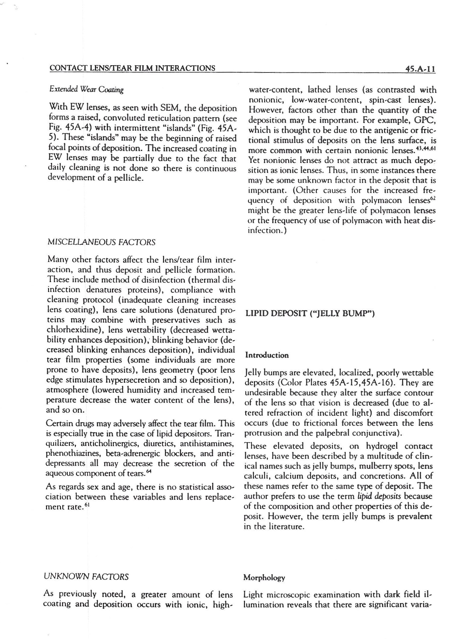 45A11 ◄ Back Next ► Picture 13 of 29 Click here for Clinical Contact Lens Practice, Chapter 33, Deposits Coatings: Hydrogel Lens/ Tear-Film Interactions Life Cycle of a Soft Contact Lens: Pathological and Normal Tear Film Interactions