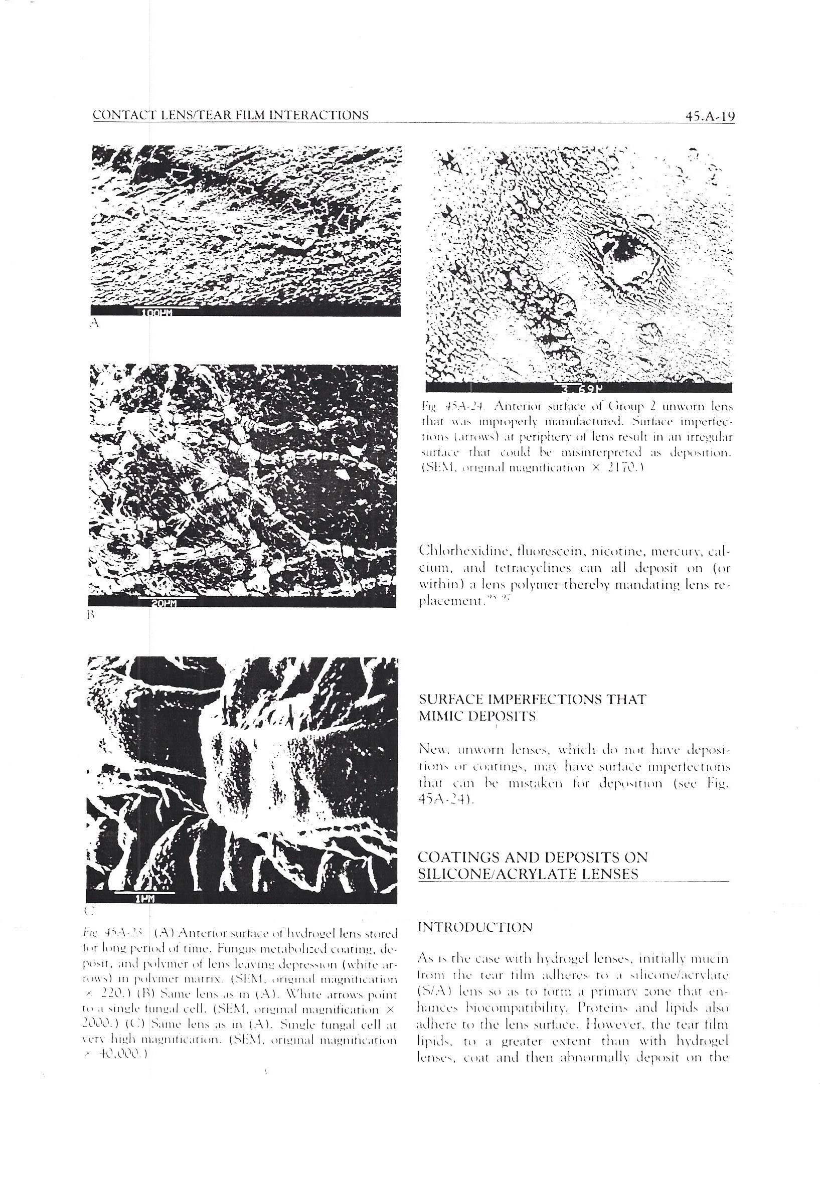 45A19 ◄ Back Next ► Picture 21 of 29 Click here for Clinical Contact Lens Practice, Chapter 33, Deposits Coatings: Hydrogel Lens/ Tear-Film Interactions Life Cycle of a Soft Contact Lens: Pathological and Normal Tear Film Interactions