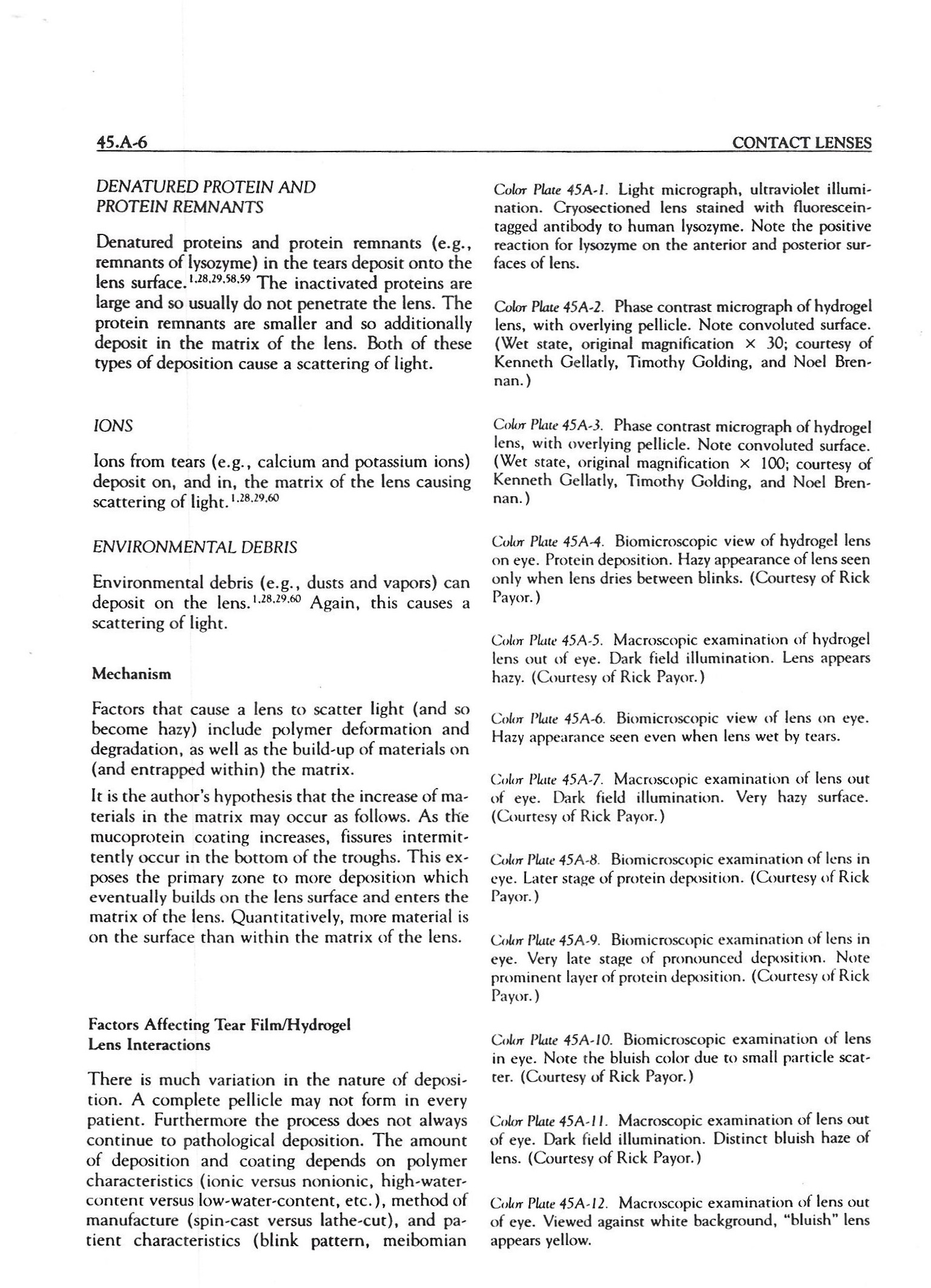 45A6 ◄ Back Next ► Picture 8 of 29 Click here for Clinical Contact Lens Practice, Chapter 33, Deposits Coatings: Hydrogel Lens/ Tear-Film Interactions Life Cycle of a Soft Contact Lens: Pathological and Normal Tear Film Interactions