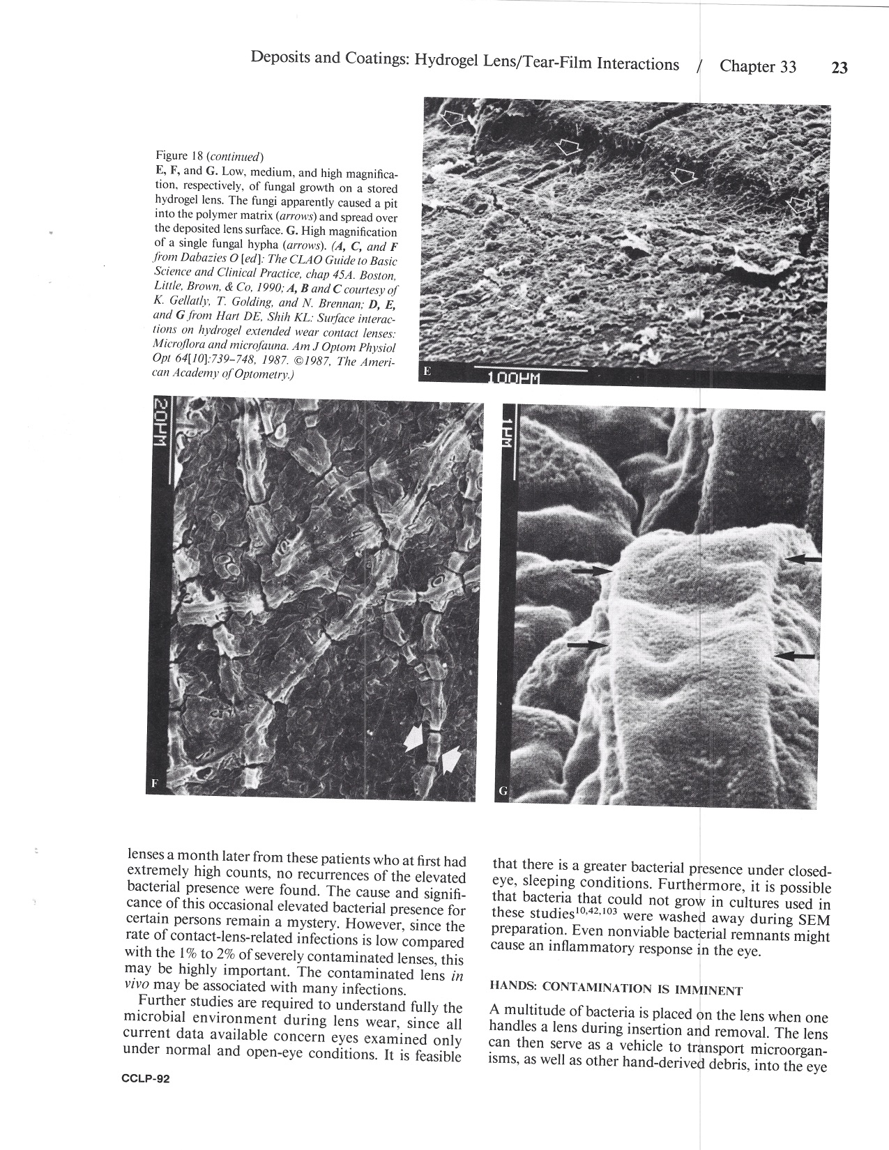 P23 ◄ Back Next ► Picture 23 of 41 Go to Chapter 45A, Contact Lens/Tear Film Interactions: Depositions and Coatings, Contact Lenses: Second Edition Life Cycle of a Soft Contact Lens: Pathological and Normal Tear Film Interactions
