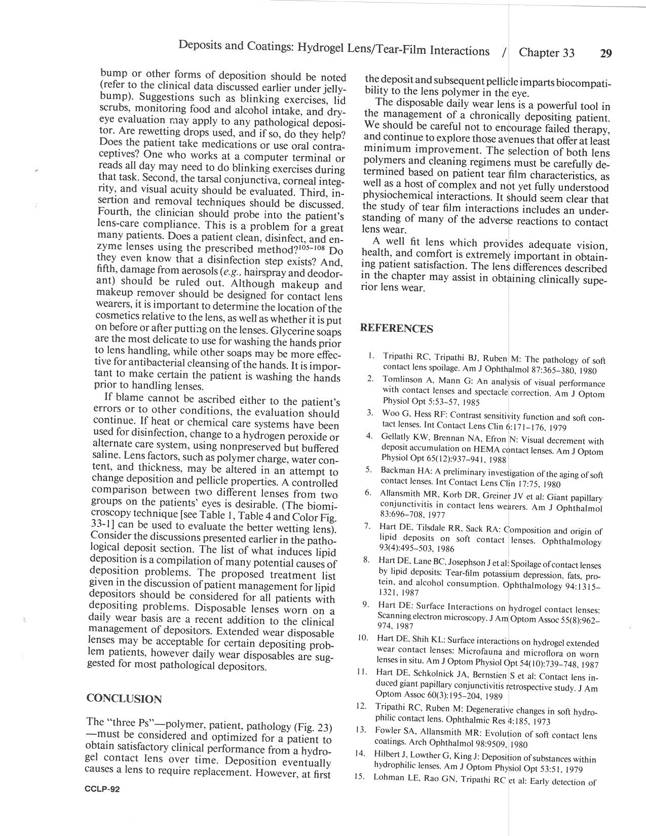 P29 ◄ Back Next ► Picture 29 of 41 Go to Chapter 45A, Contact Lens/Tear Film Interactions: Depositions and Coatings, Contact Lenses: Second Edition Life Cycle of a Soft Contact Lens: Pathological and Normal Tear Film Interactions