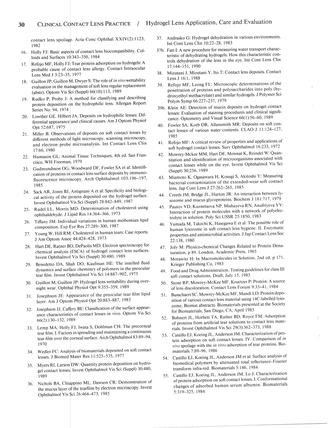 P30 ◄ Back Next ► Picture 30 of 41 Go to Chapter 45A, Contact Lens/Tear Film Interactions: Depositions and Coatings, Contact Lenses: Second Edition Life Cycle of a Soft Contact Lens: Pathological and Normal Tear Film Interactions