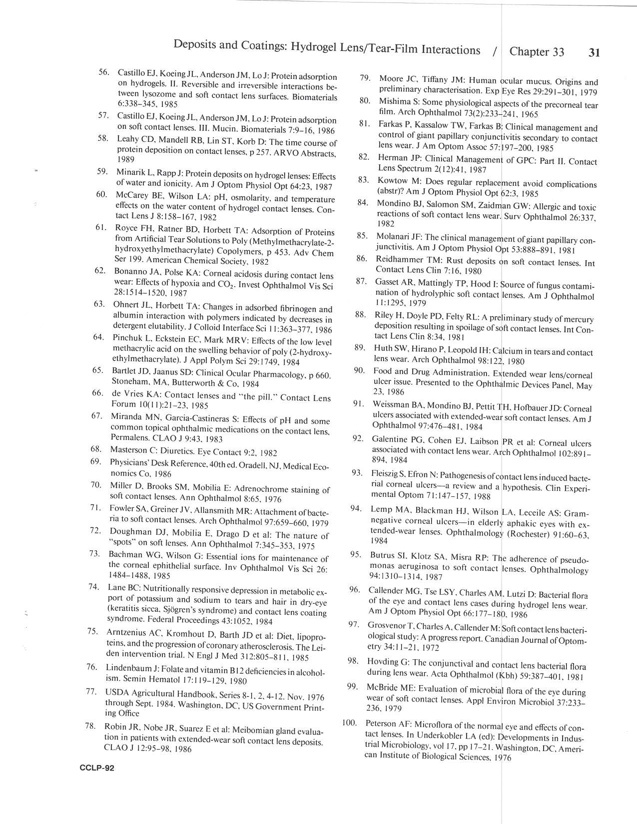 P31 ◄ Back Next ► Picture 31 of 41 Go to Chapter 45A, Contact Lens/Tear Film Interactions: Depositions and Coatings, Contact Lenses: Second Edition Life Cycle of a Soft Contact Lens: Pathological and Normal Tear Film Interactions